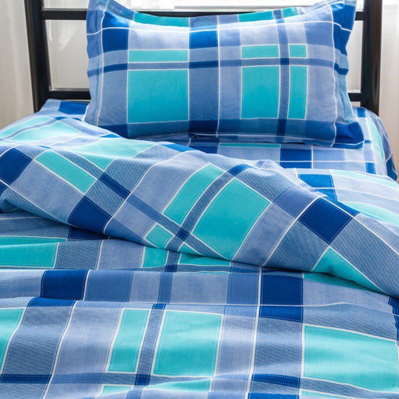 员工宿舍学生养老院三件套 床单被套印花床上用品 全棉学校三件套