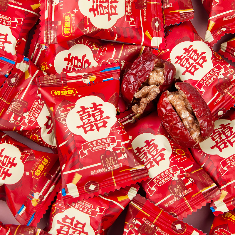 好想你枣夹核桃红枣结婚喜糖喜庆招待免洗即食报喜枣分享糖果零食