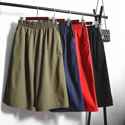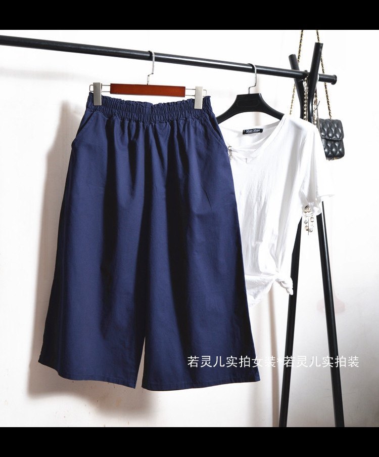 韩版大码洗水棉休闲裤松紧腰阔腿裤宽松显瘦百搭七分裤子裙裤