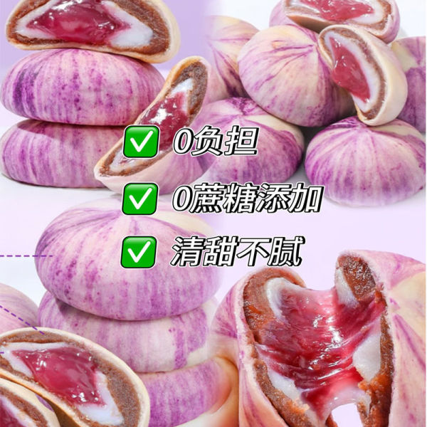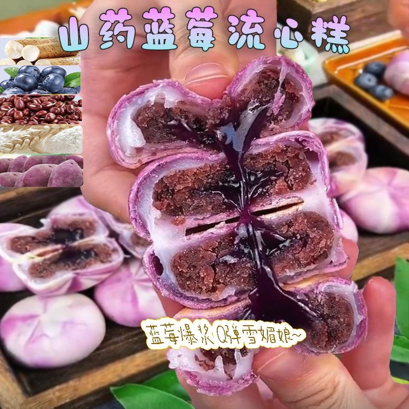 山药蓝莓流心糕点心雪媚娘山药红豆饼健康办公室休闲解馋代餐零食