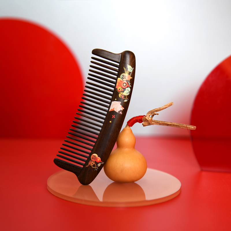 谭木匠蛇年新品镶齿梳五福临门天然木梳子女士长发专用经络按摩梳