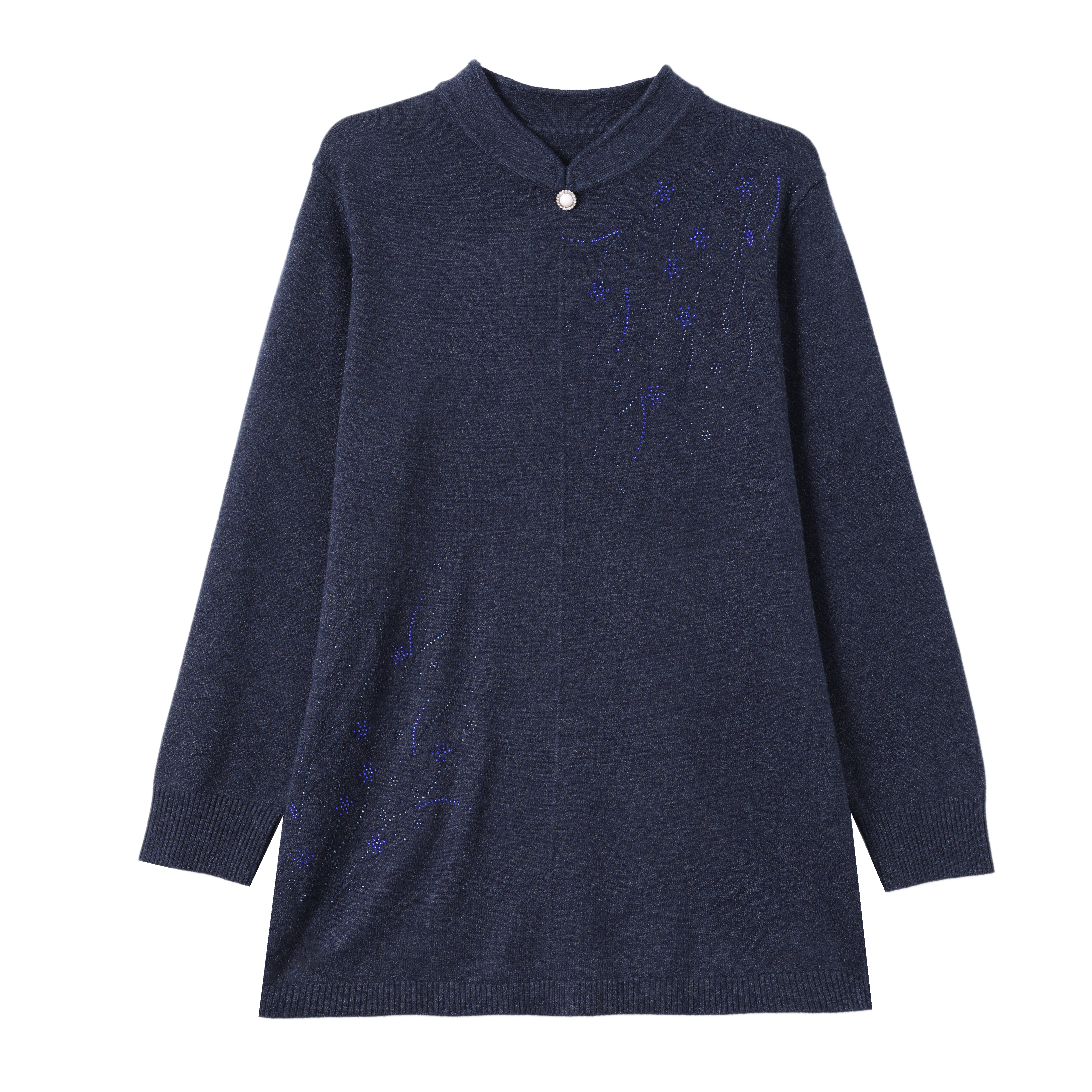 中老年新中式宽松打底毛衣女中长款妈妈宽松加肥特大码立领羊毛衫