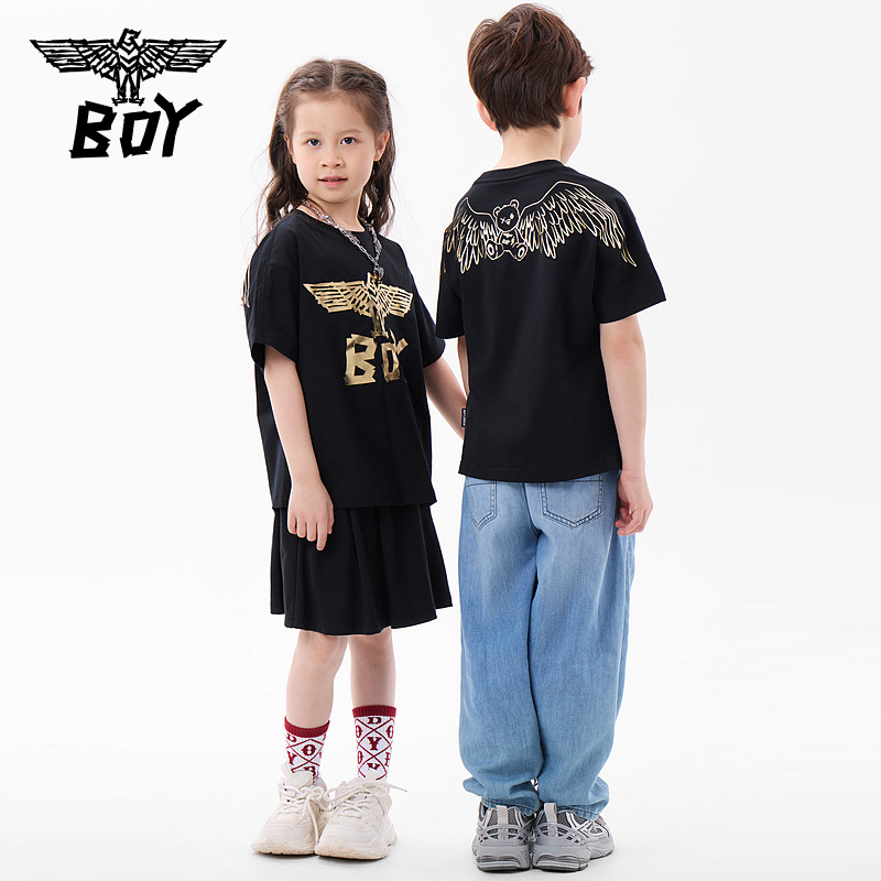 BOY童装 潮牌儿童夏季短袖T恤 翅膀时尚百搭圆领男童女童中大童