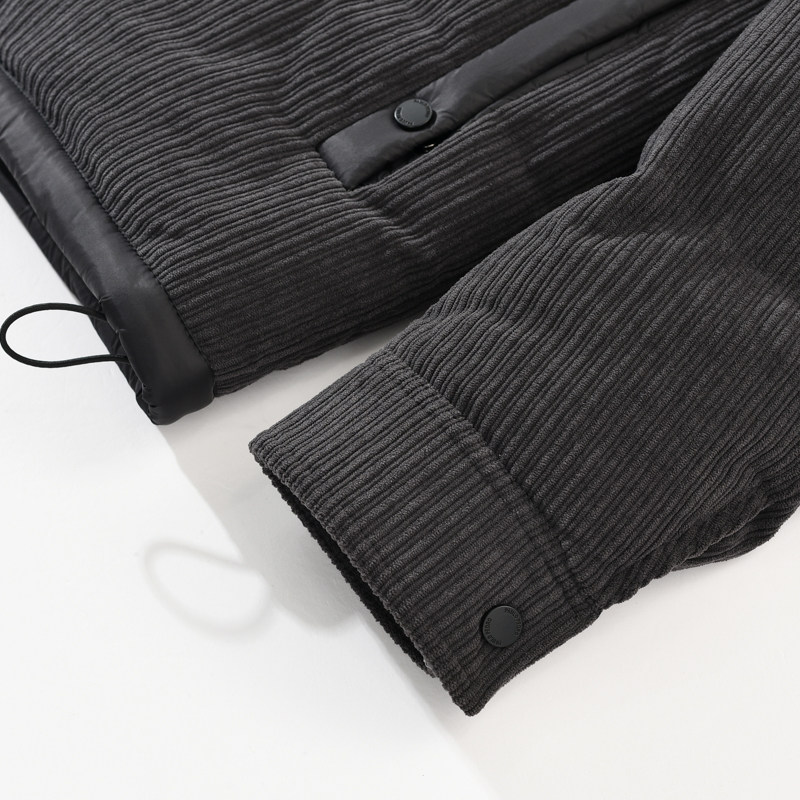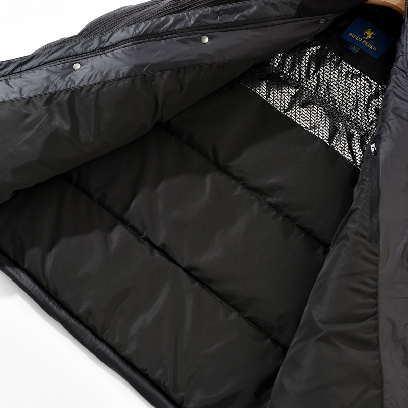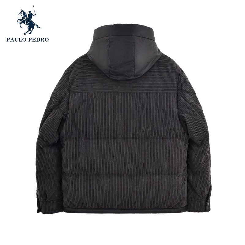 保罗彼得专柜冬季男羽绒服质感条纹皮质保暖连帽外套RRCD33260