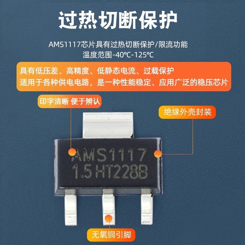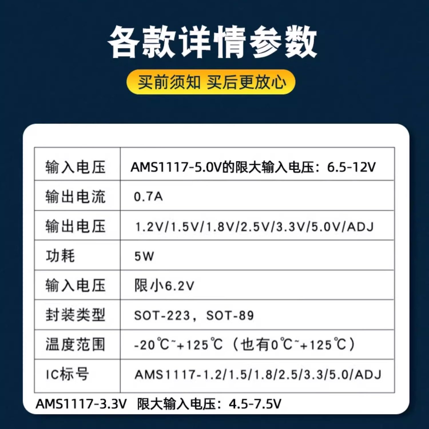 AMS1117-3.3V 1.5/1.8/5.0vADJ稳压asm1117电源ic降压芯片sot-223