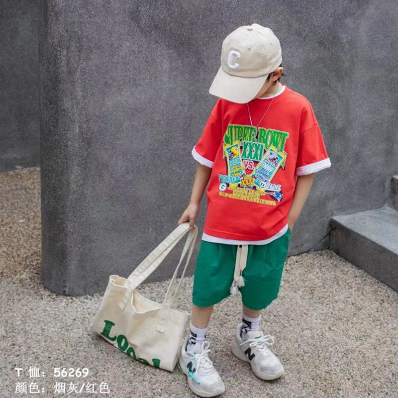 56269木瓜汁家品牌短袖T恤衫童装夏款男女童字母体恤中大童