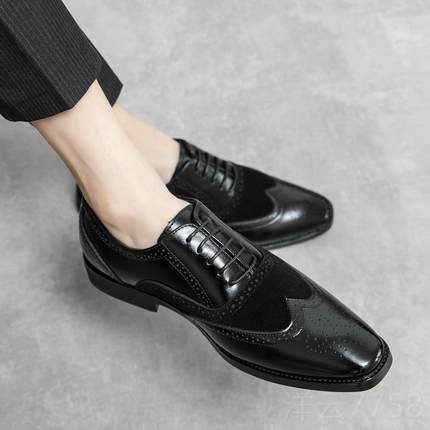 高档秋楼季流英伦尖头正布装皮鞋男士韩版复古休闲影婚鞋洛克雕花