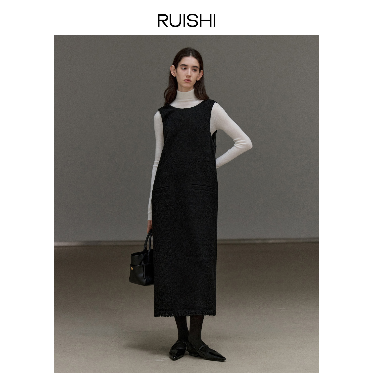 RUISHI芮时 前后两穿简约肌理感羊毛背心裙A字无袖连衣裙女秋冬季