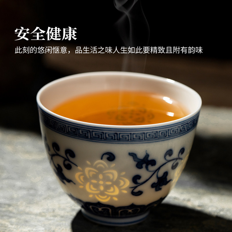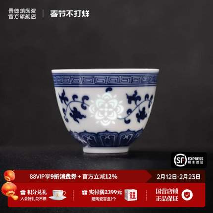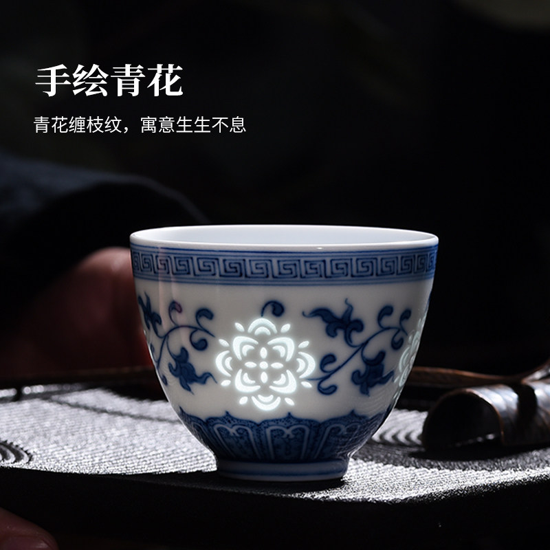 景德镇官方青花玲珑斗彩陶瓷手绘品茗单杯国礼纪念收藏主人茶杯
