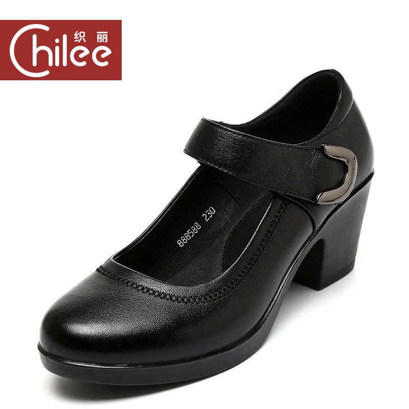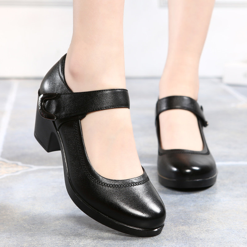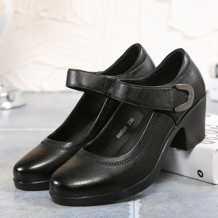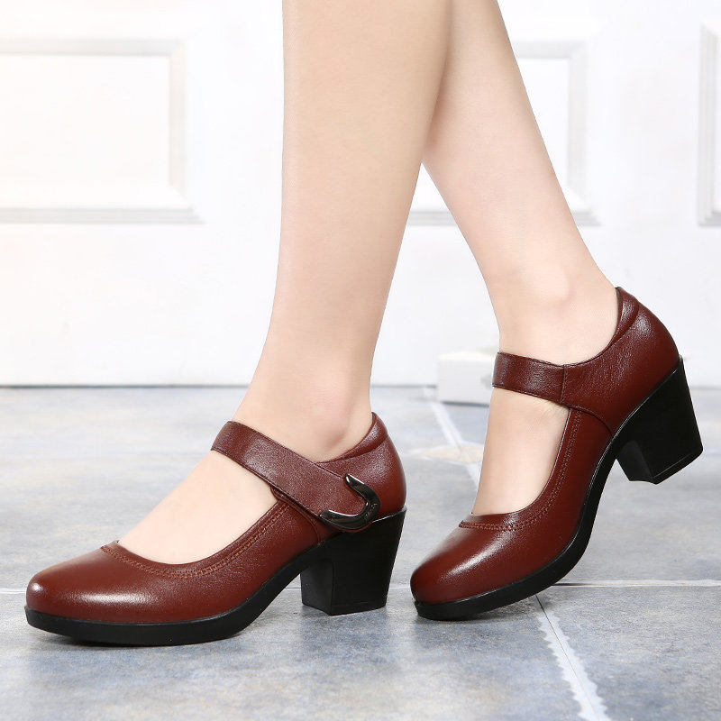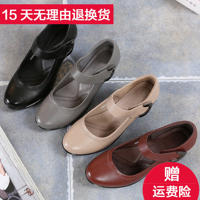 织丽妈妈皮鞋粗跟真皮春秋中跟中年女鞋软底女大码宽脚中老年单鞋