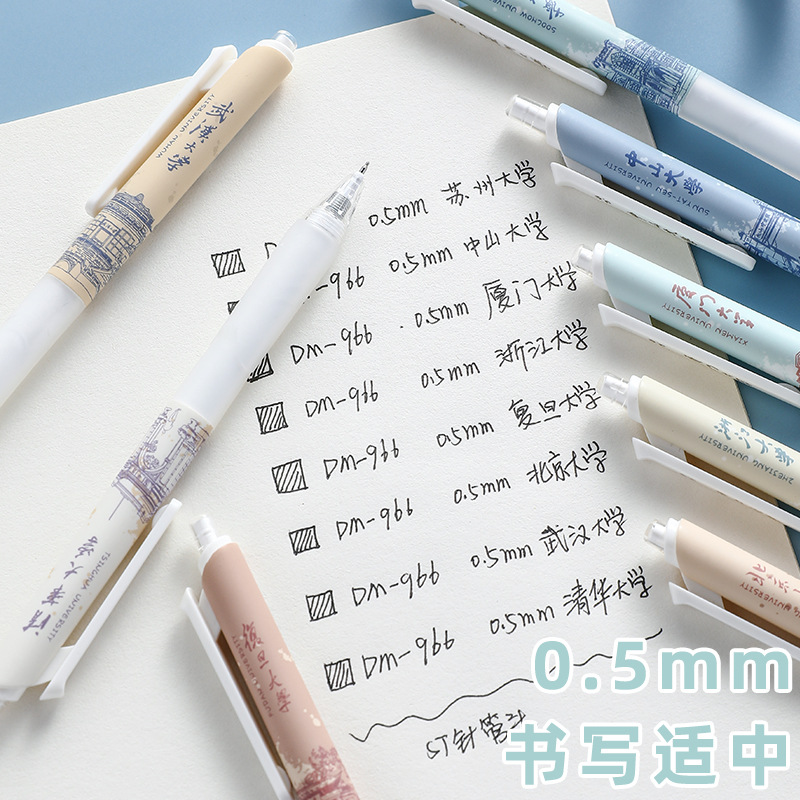 东米966大学印象不洇纸按动笔ST速干黑笔学生励志文具ins高颜值刷题考试笔清华北大厦门中性笔名校国风签字笔