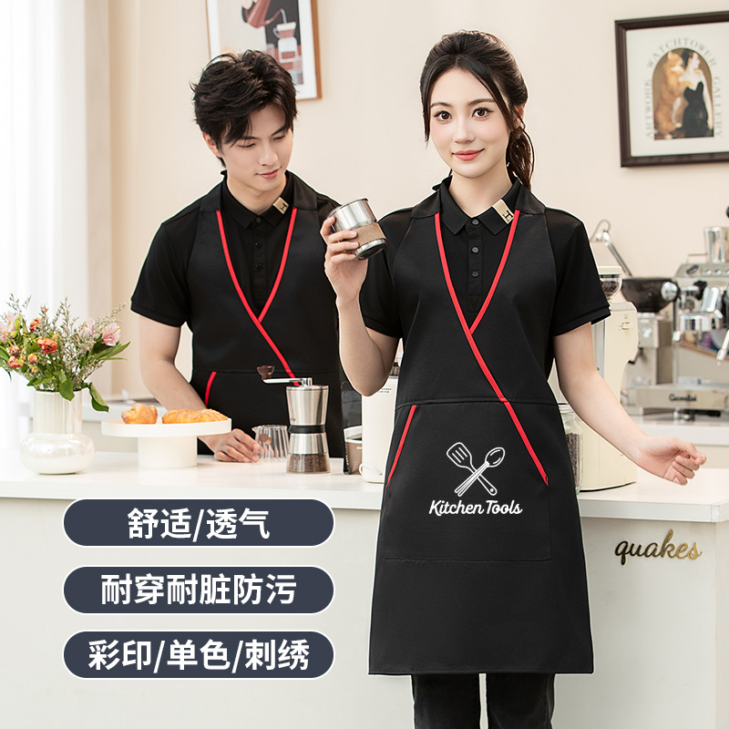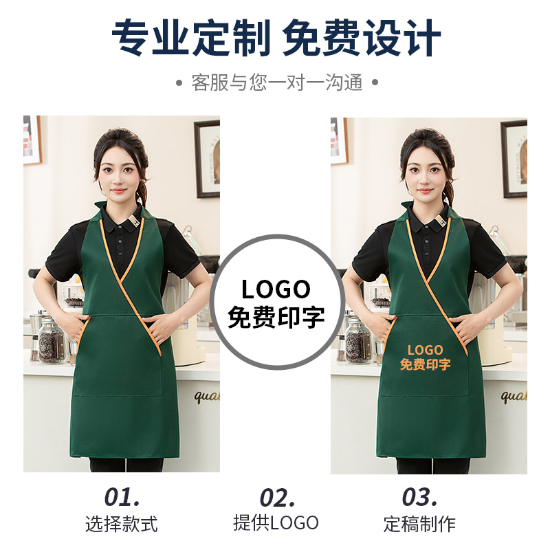 美容院美甲店专用围裙定制logo印字女V领工作服母婴店理发师围腰