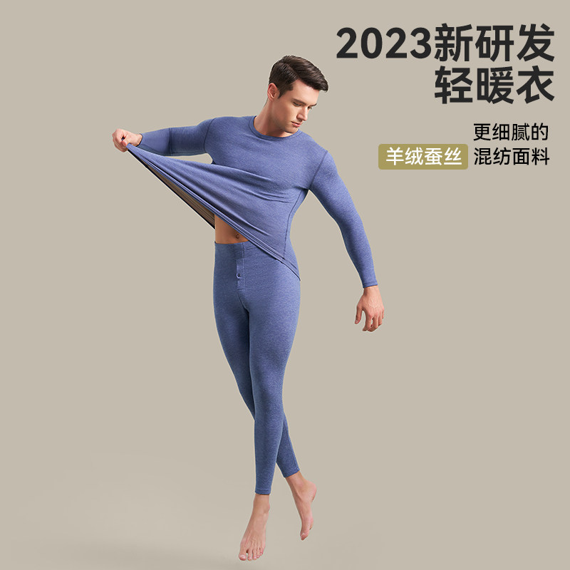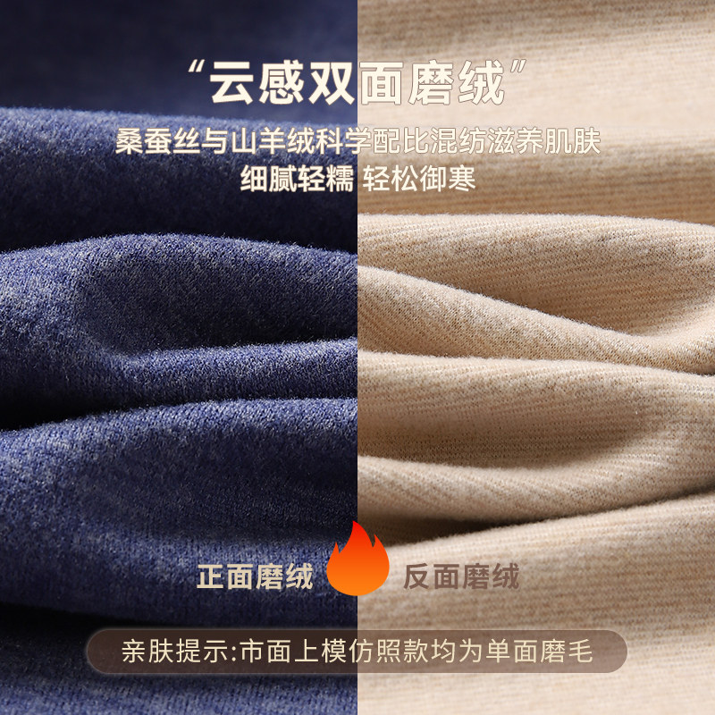猫人保暖内衣男秋衣秋裤套装加厚加绒德羽绒蚕丝打底棉毛衫冬防寒
