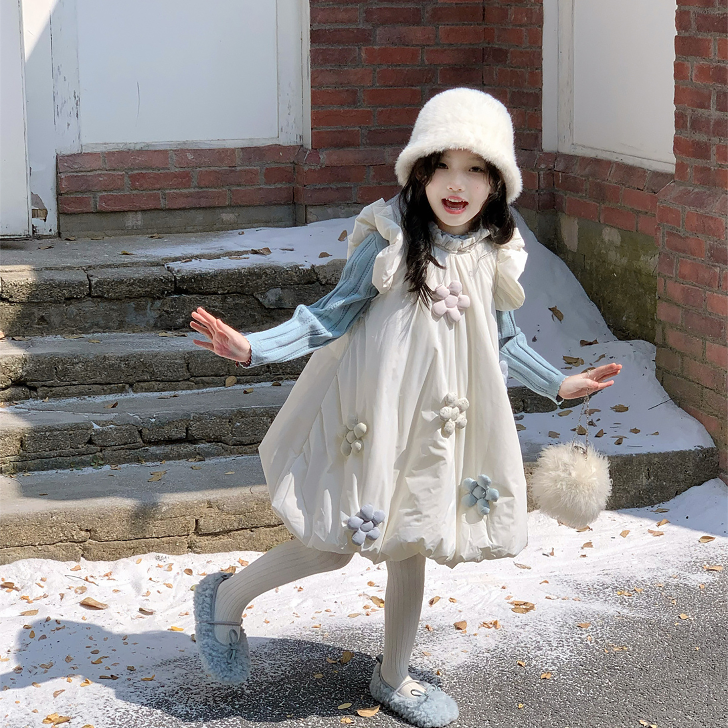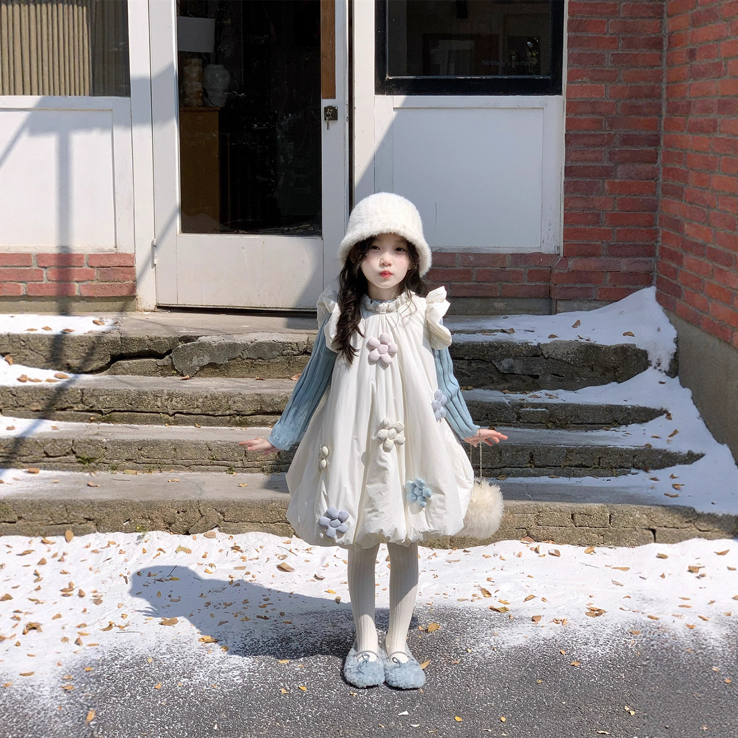 韩版新款2025冬款女童夹棉宽松背心裙宝宝洋气甜美花朵公主连衣裙