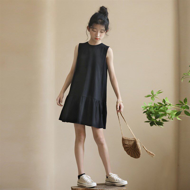 女孩连衣裙无袖儿童夏装新款韩版亲子装洋气荷叶边大童女童背心裙