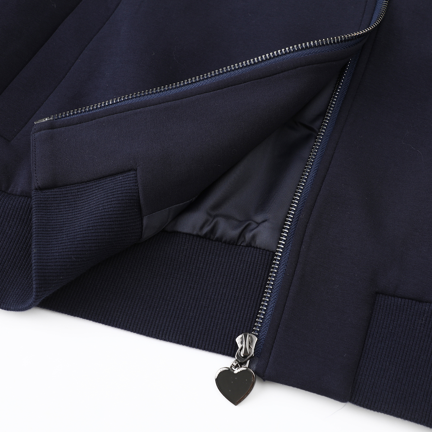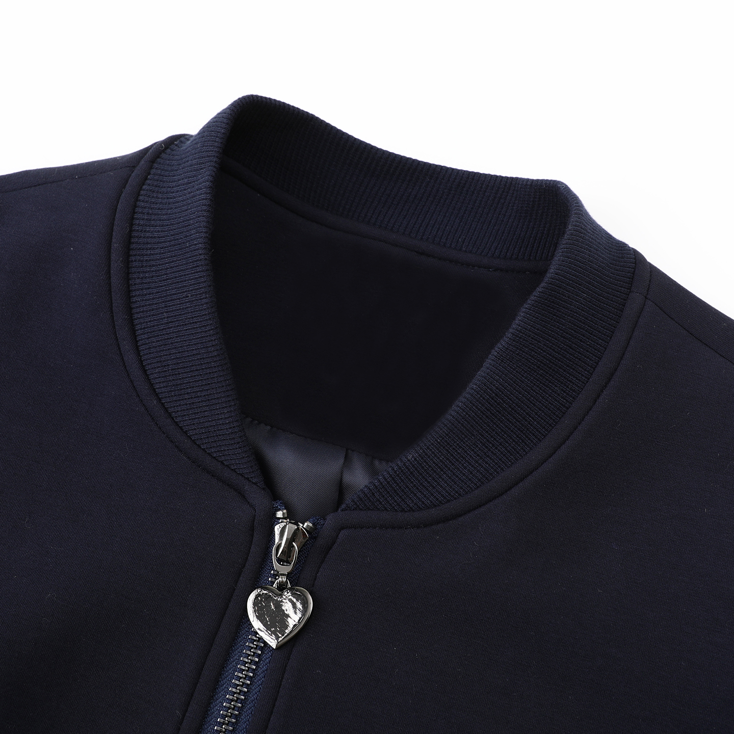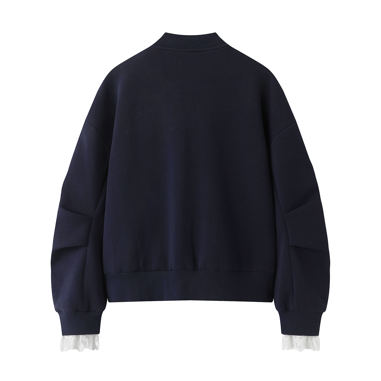 阔系!藏青色蕾丝拼接棒球服休闲短外套宽松2025女长袖小个子上衣