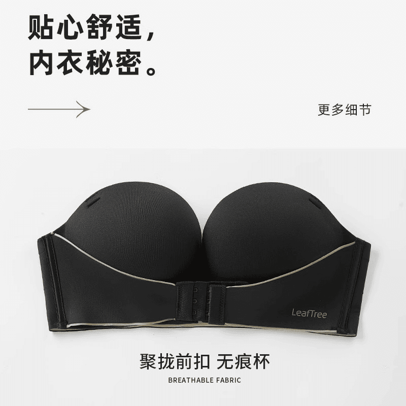 前扣无肩带内衣女士小胸显大聚拢防下垂防滑掉夏季隐形裹抹胸文胸
