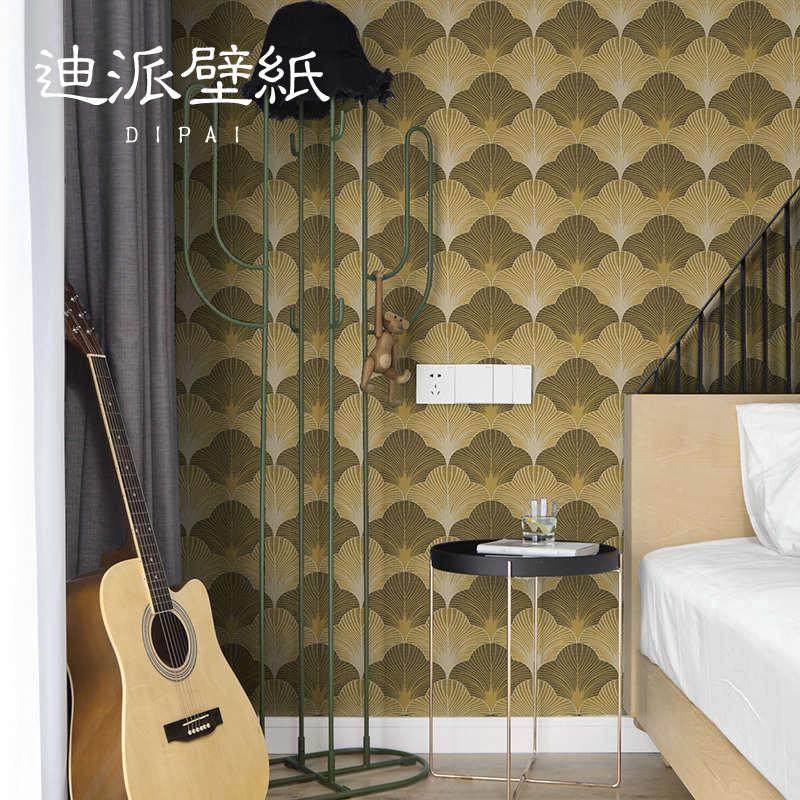 现代简约无缝墙布全屋客厅卧室主卧背景墙灰色扇形银杏叶壁纸壁布