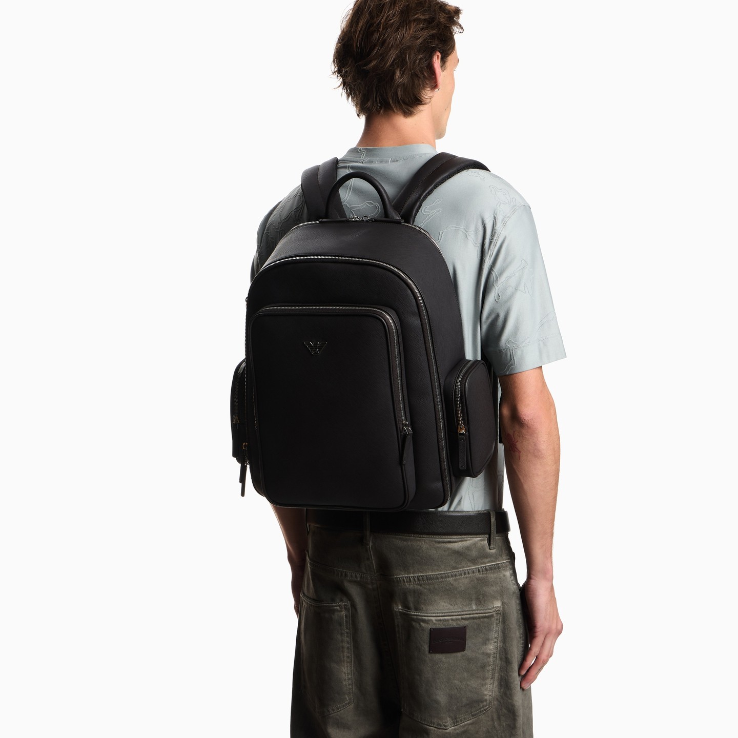 阿玛尼男士立体外袋手提双肩包