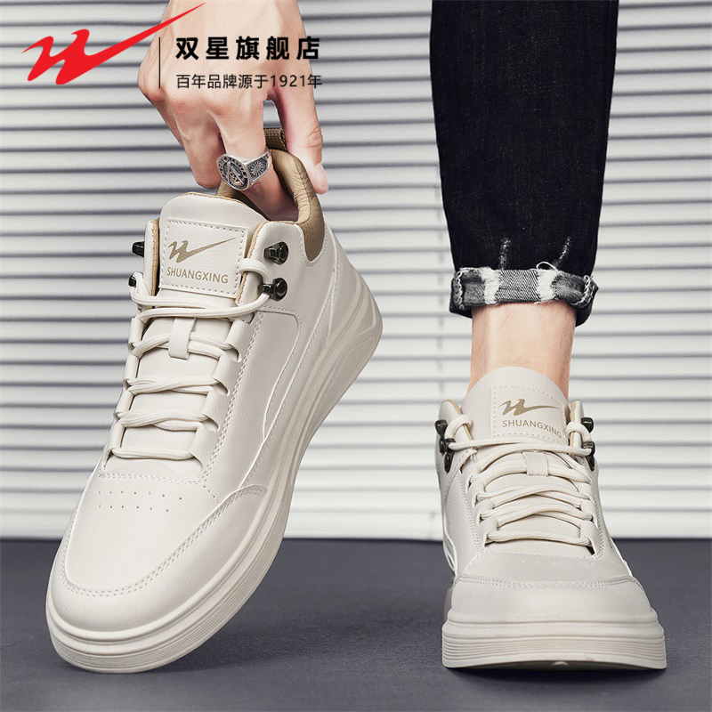 双星男鞋秋季2025防水轻便休闲皮鞋男士高帮板鞋运动小白潮鞋