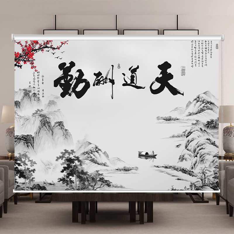 新中式山水画卷帘办公室客厅窗帘