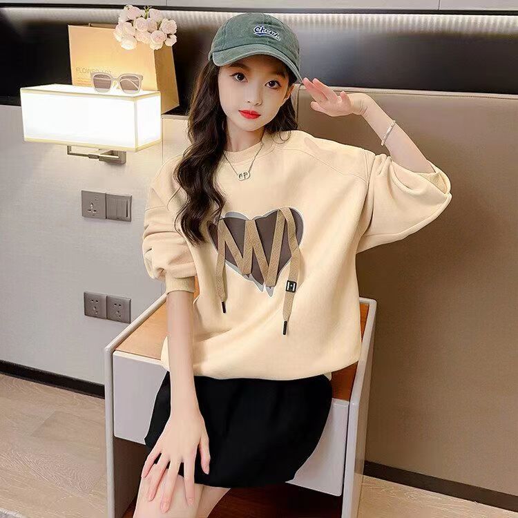 2025年新款潮流爱心印花卫衣女秋冬季学生韩版宽松长袖t恤上衣服