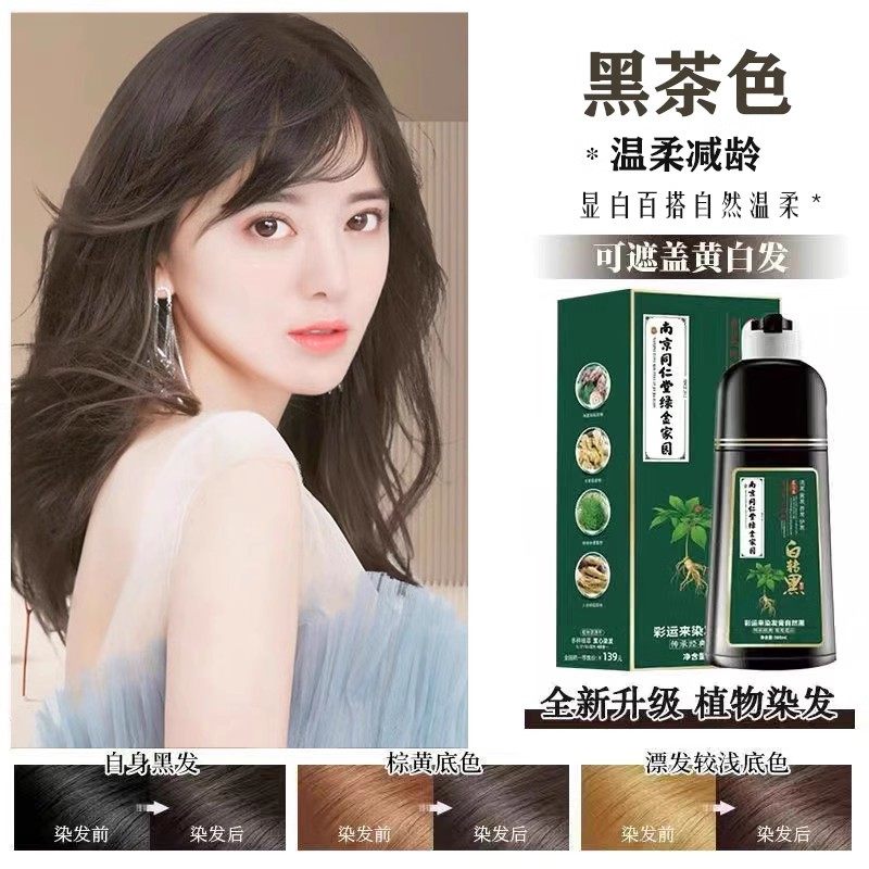 南京同仁堂一洗黑染发剂纯植物不刺激自然不沾头皮官方正品