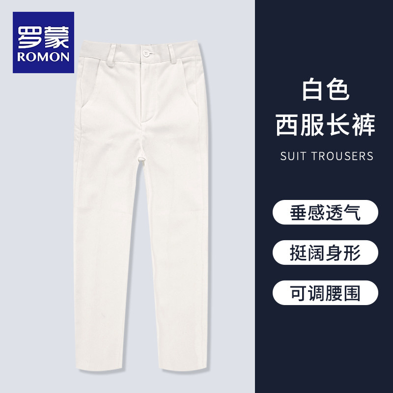 罗蒙儿童白色西裤演出校园白直筒裤男童2023上新白西服裤春秋新款