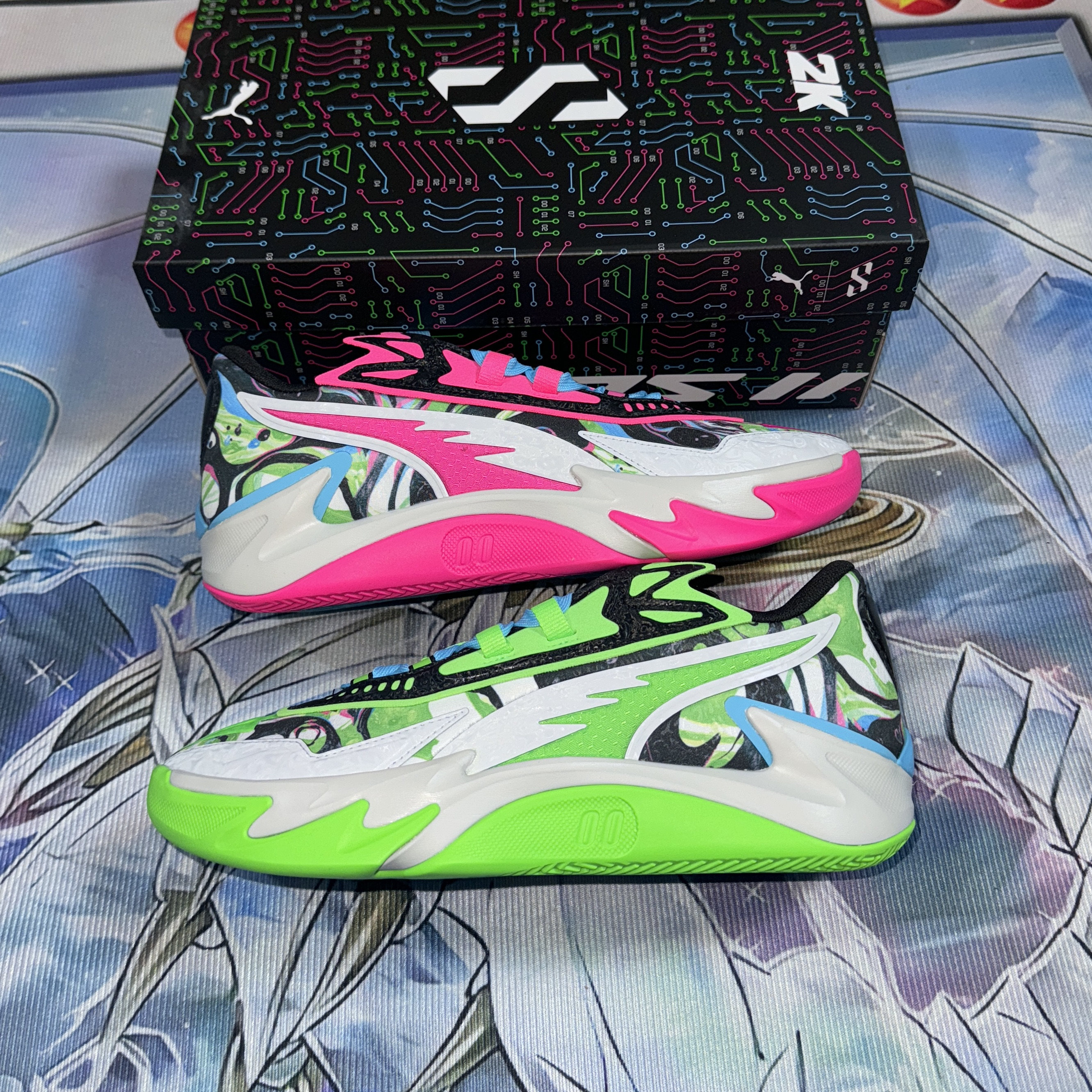NBA 2K x PUMA Scoot Zeros减震低帮篮球鞋白绿蓝粉311349-01