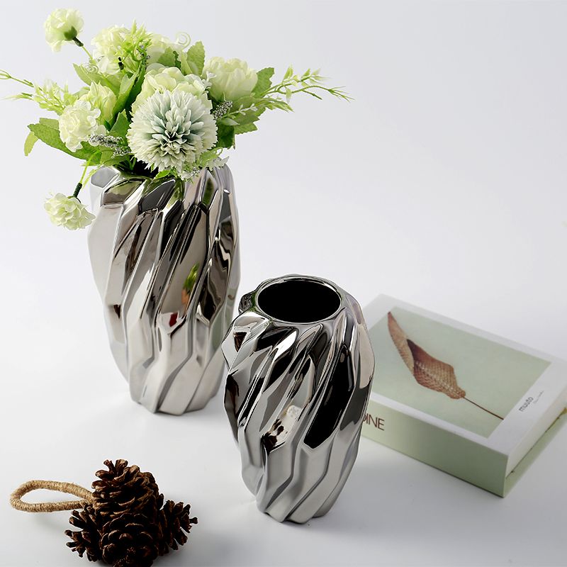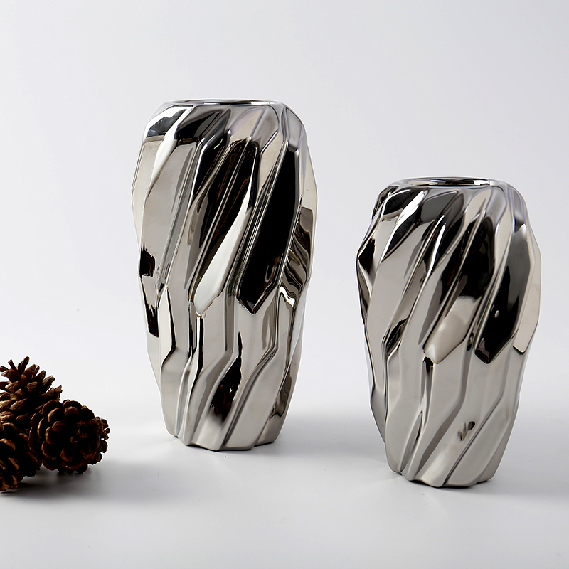 现代简约轻奢金色陶瓷花瓶摆件创意样板L房客厅卧室软装装饰花器