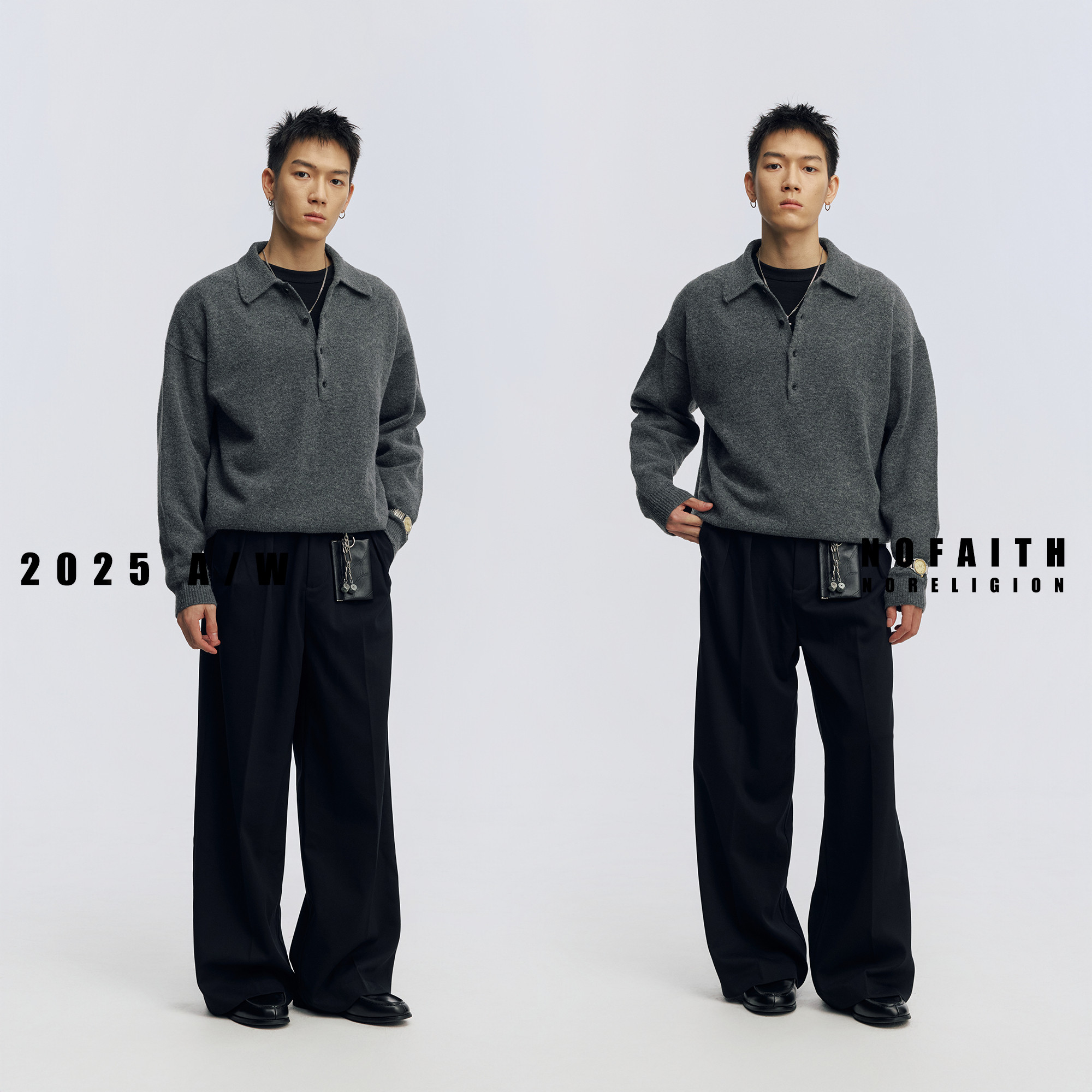 NOFAITH套头开襟羊毛混纺POLO领毛衣男冬季款宽松针织衫休闲上衣