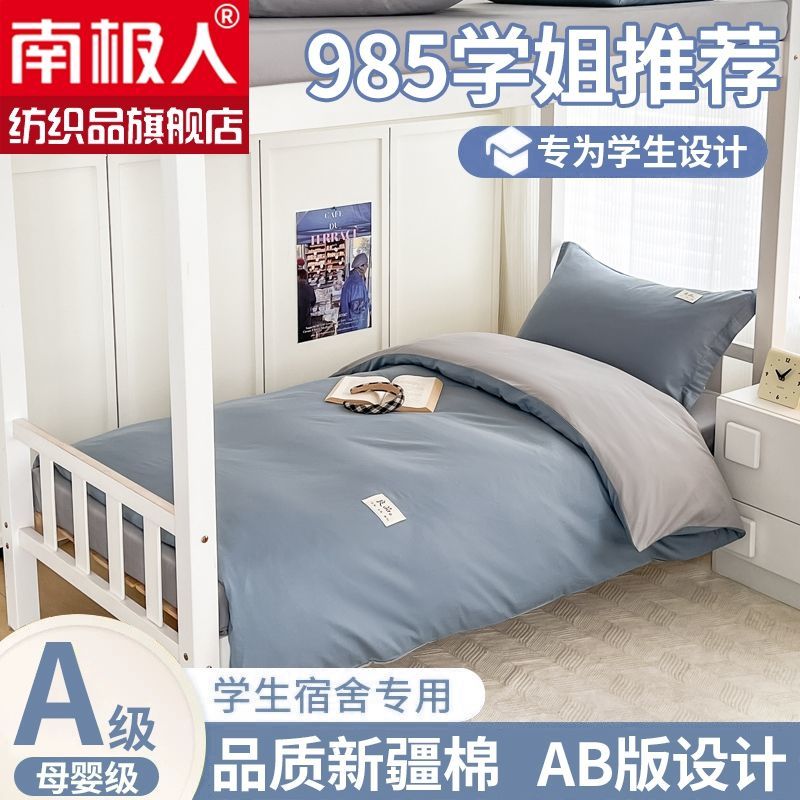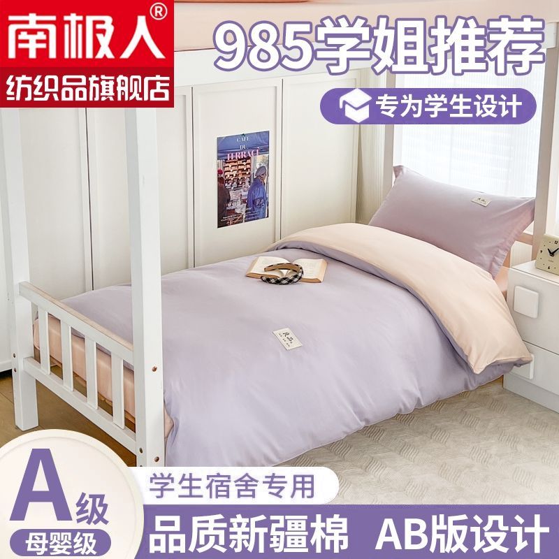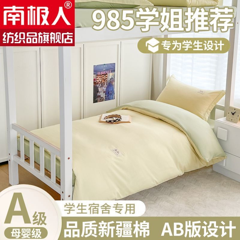 南极人100%纯棉被套床单四件套学生宿舍单人被罩被单人三件套新款