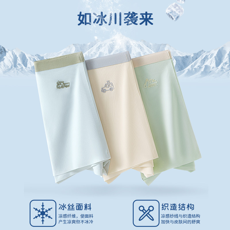 猫人男童内裤夏季冰丝凉感平角裤青少年中大童抑菌透气四角短裤男