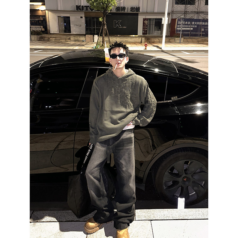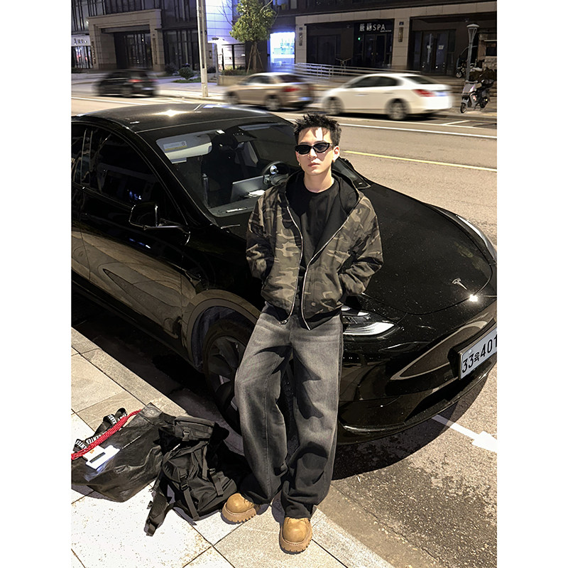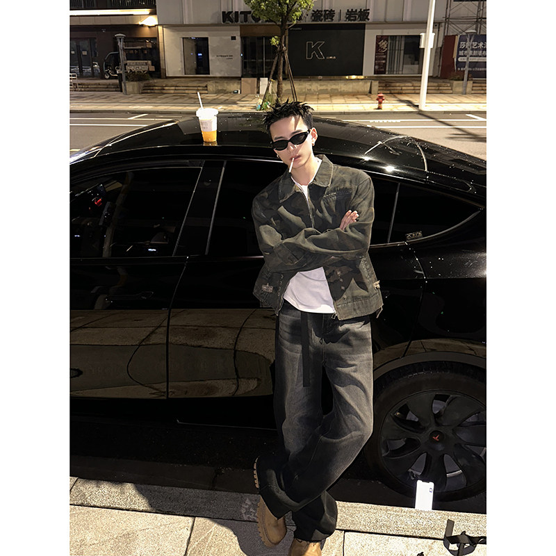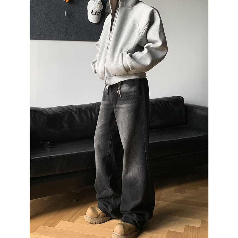 PLTH*美式复古高街vibe复古做旧水洗牛仔裤垂感宽松直筒阔腿长裤