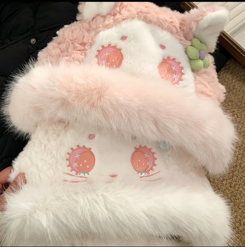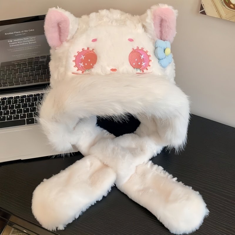 可爱耳朵会动冬季花朵猫咪毛绒两件套帽护耳帽加厚骑行防寒雷锋帽