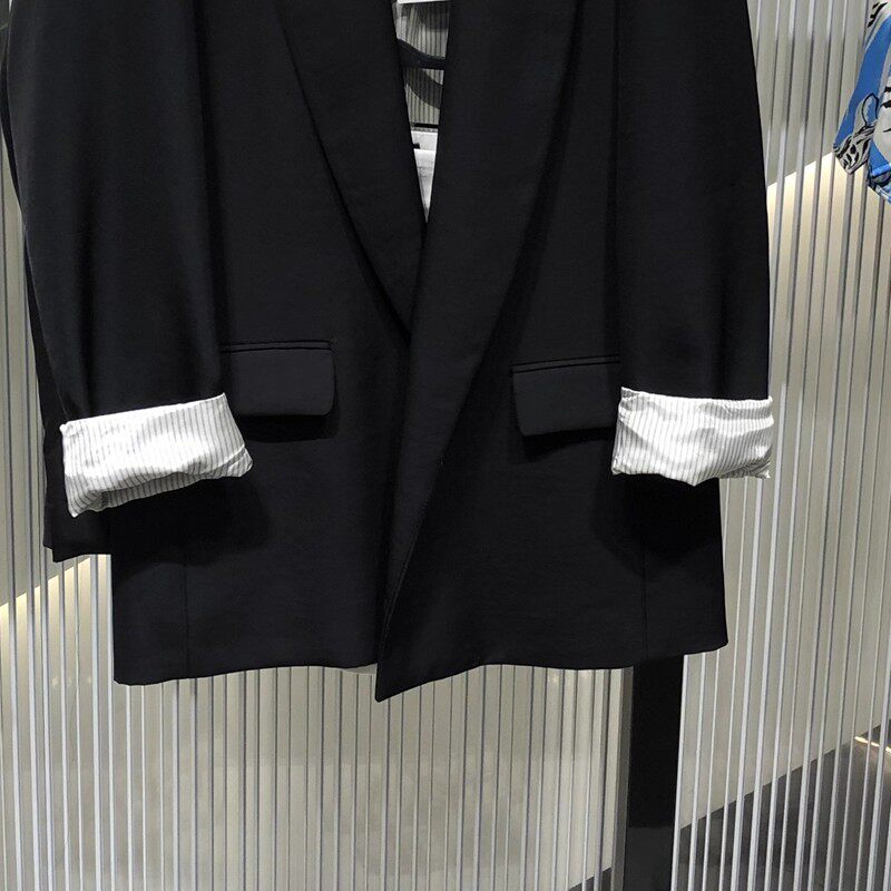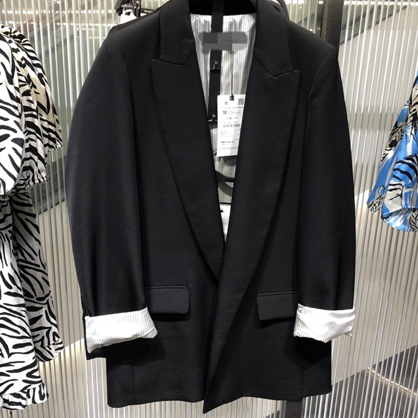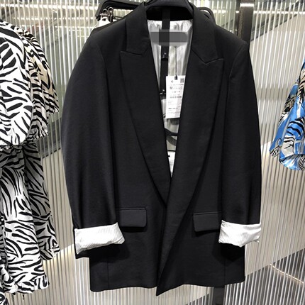 ZARLuvip查罗女装春秋2023新款条纹印花黑色西装外套垂性小西服
