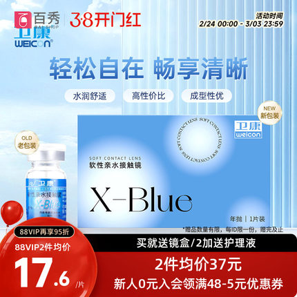 2片装】卫康x-blue隐形近视眼镜年抛盒高度数隐型旗舰店官网正品