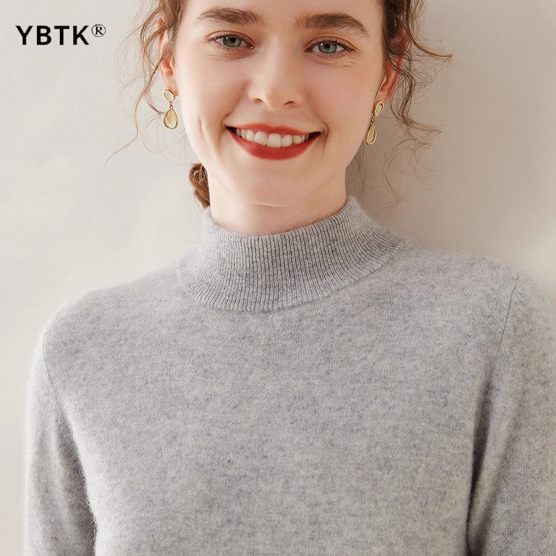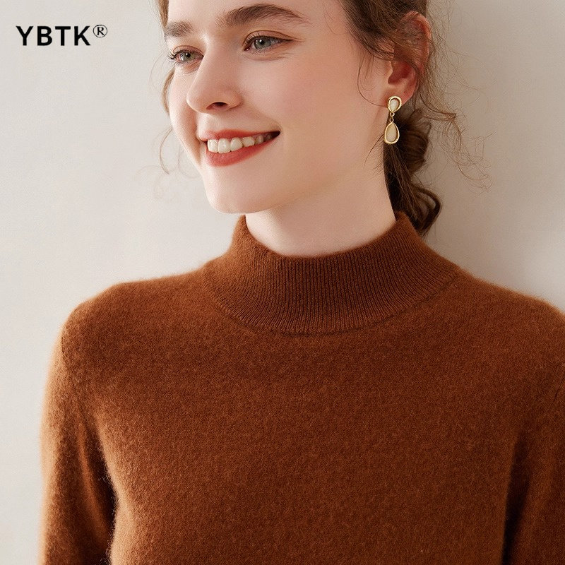鄂尔多斯市正品羊毛衫女士2025冬季新款半高双层领套头针织打底衫