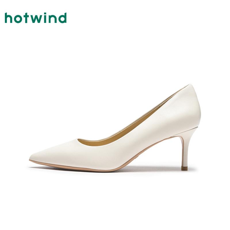 热风尖头高跟鞋女款2025年秋季新款法式细跟浅口米色单鞋气质女鞋