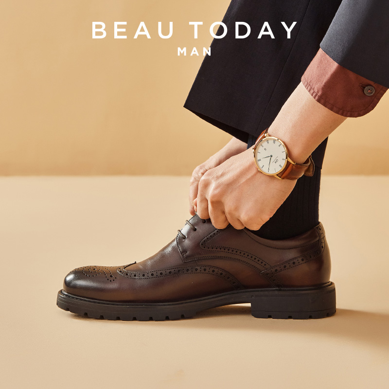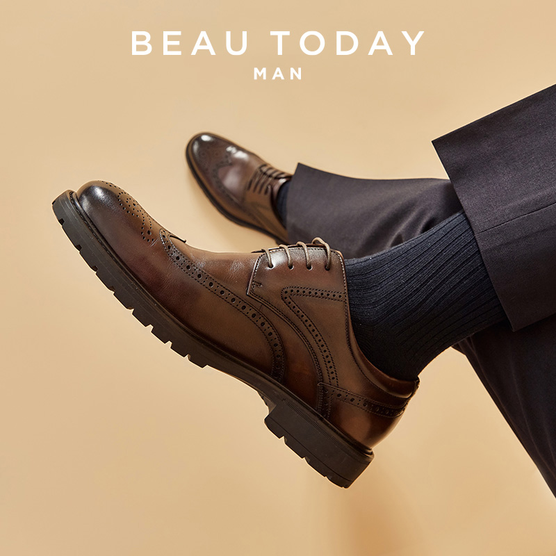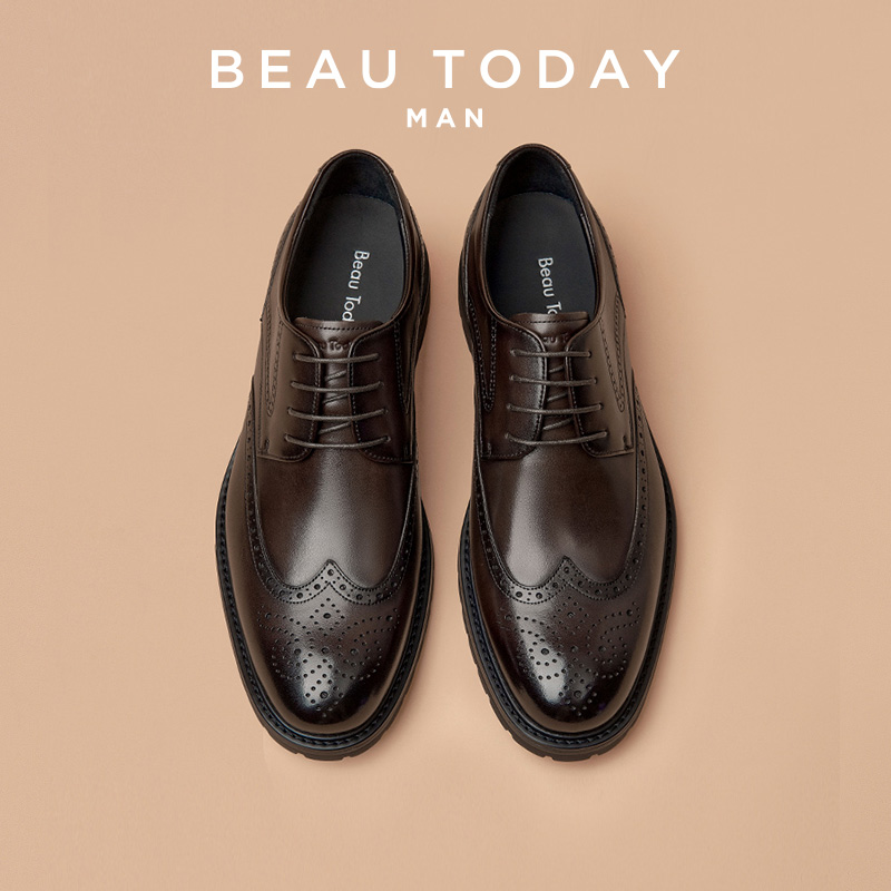 BeauToday男士皮鞋布洛克英伦风德比鞋男款商务正装结婚新郎鞋