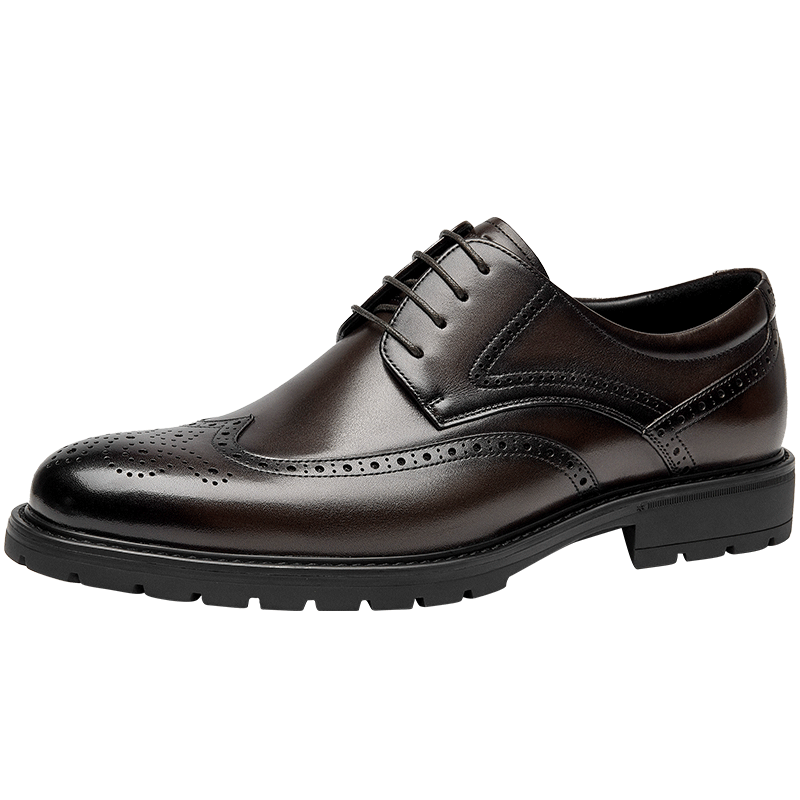真皮英伦风布洛克雕花德比鞋西装
