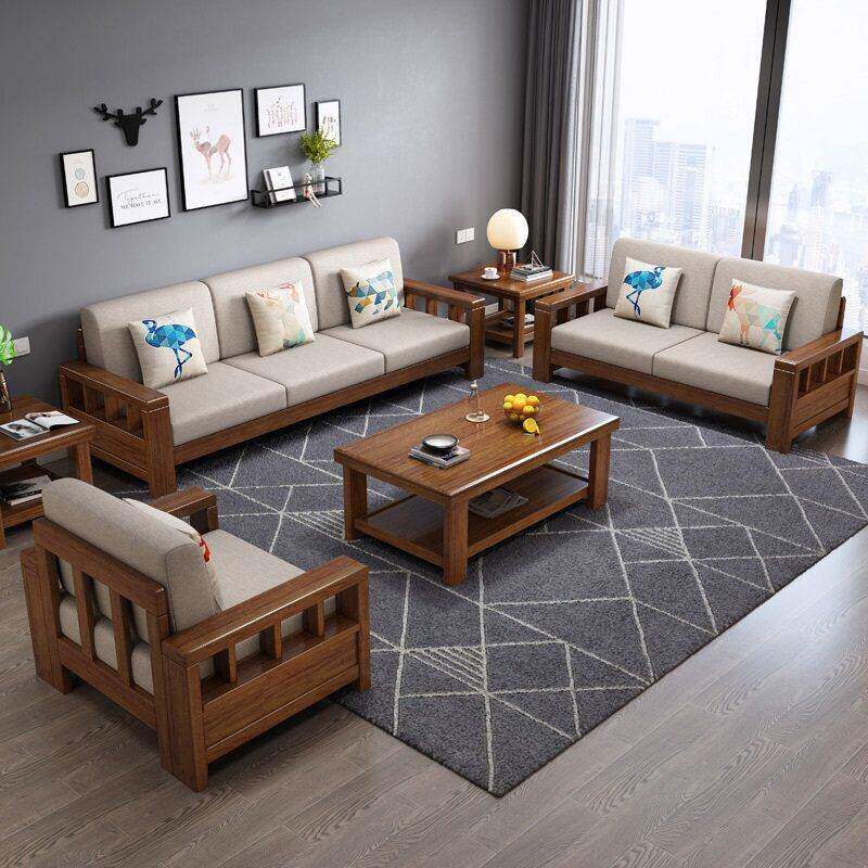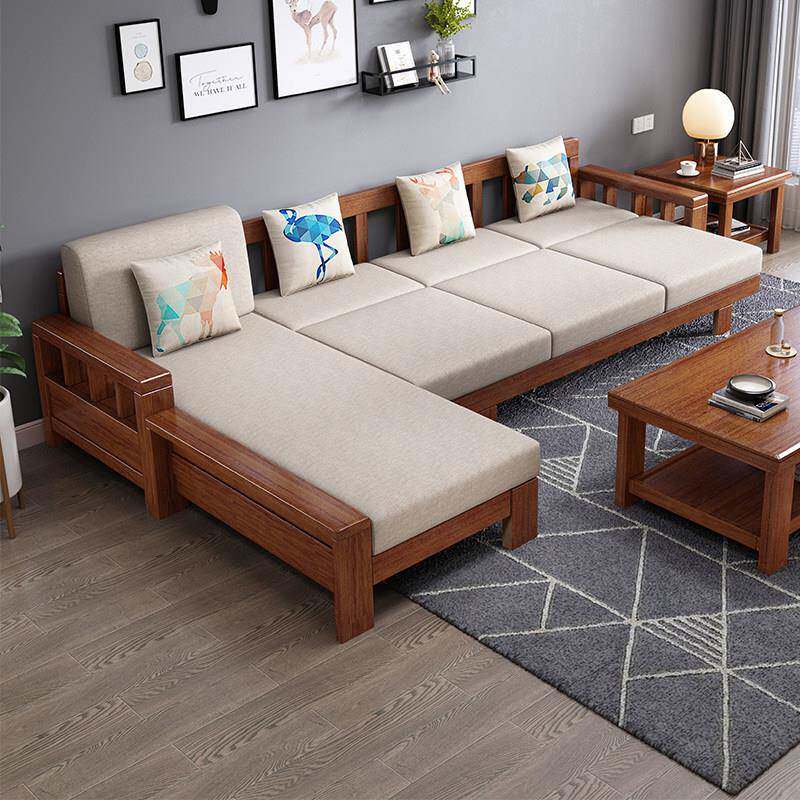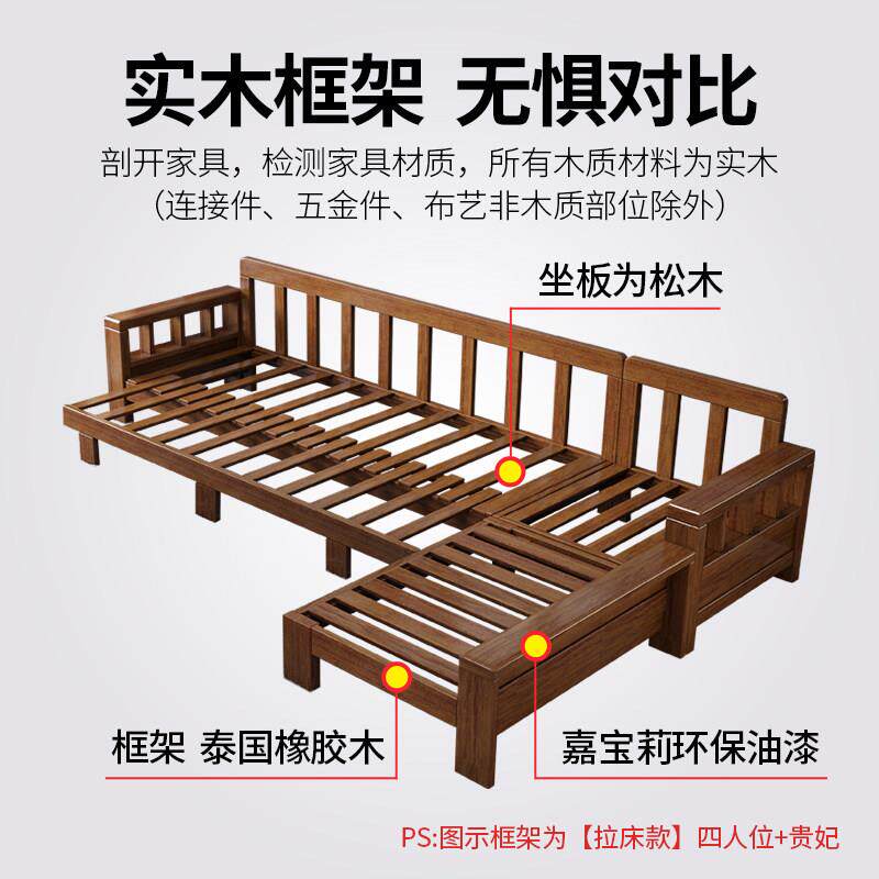 中式实木沙发床两用客厅全实木小户型组合现代简约家用布艺木沙发