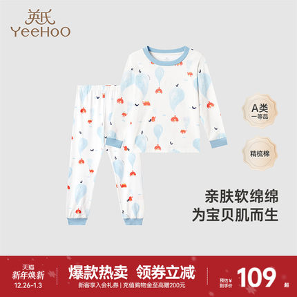 英氏儿童红色睡衣秋衣秋裤保暖春秋男女童家居服宝宝内衣套装秋冬
