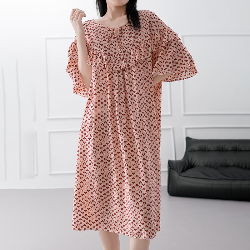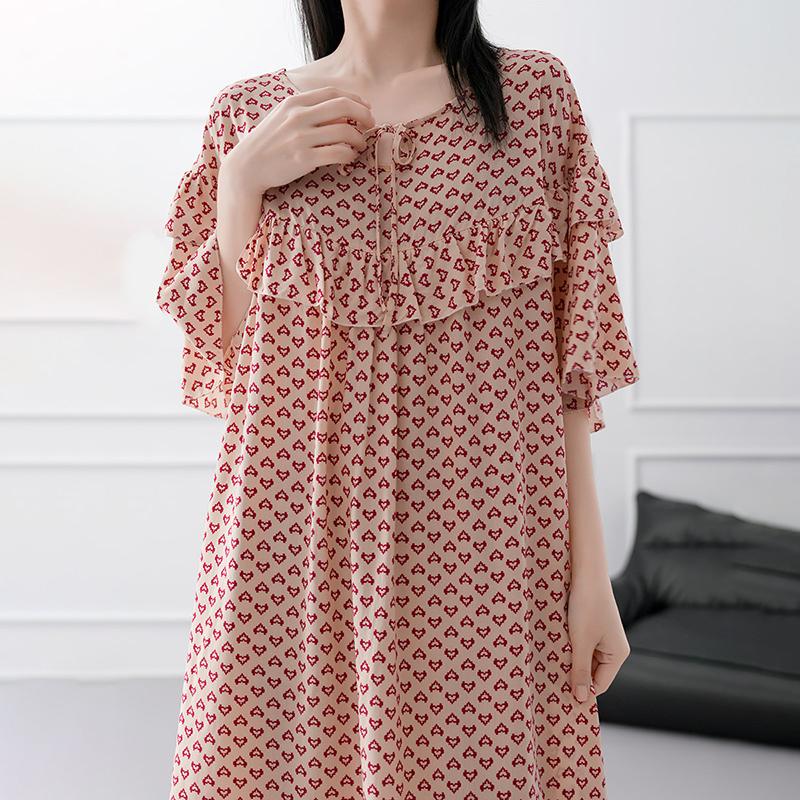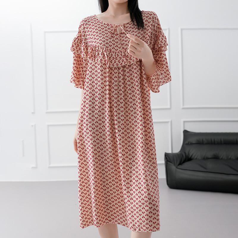 睡裙女夏季2025年新款棉绸长袖夏天薄款甜美公主风宽松睡衣家居服