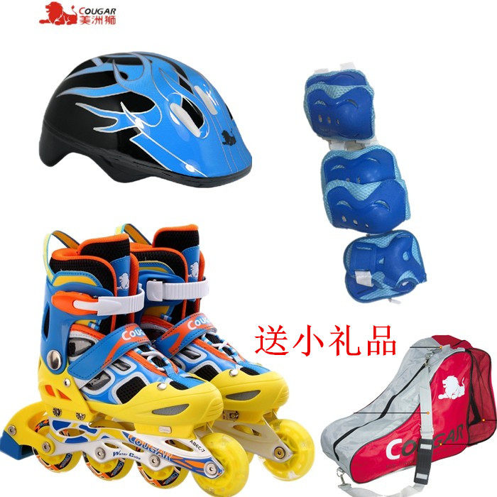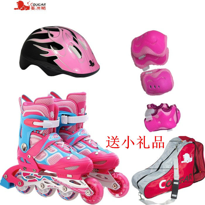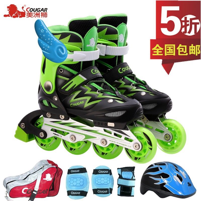 美洲狮正品溜冰鞋儿童全套装可调闪光轮滑鞋旱冰鞋成年人男女包邮