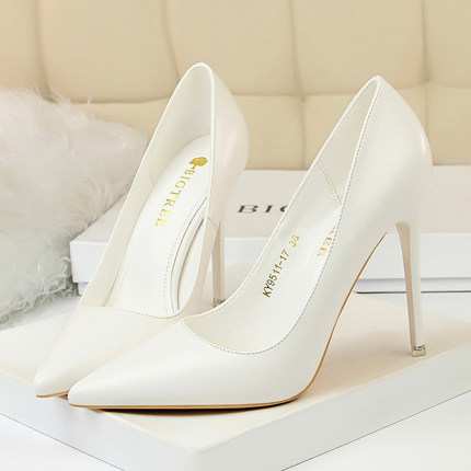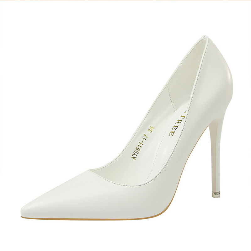 10cm细跟尖头单鞋白色黑色黄色工作网红高跟鞋2025春季新款糖果色
