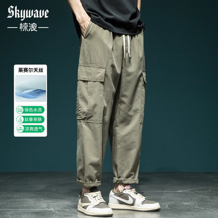 高级感痞帅莱赛尔工装裤男直筒宽松大码休闲裤夏季新款百搭九分裤