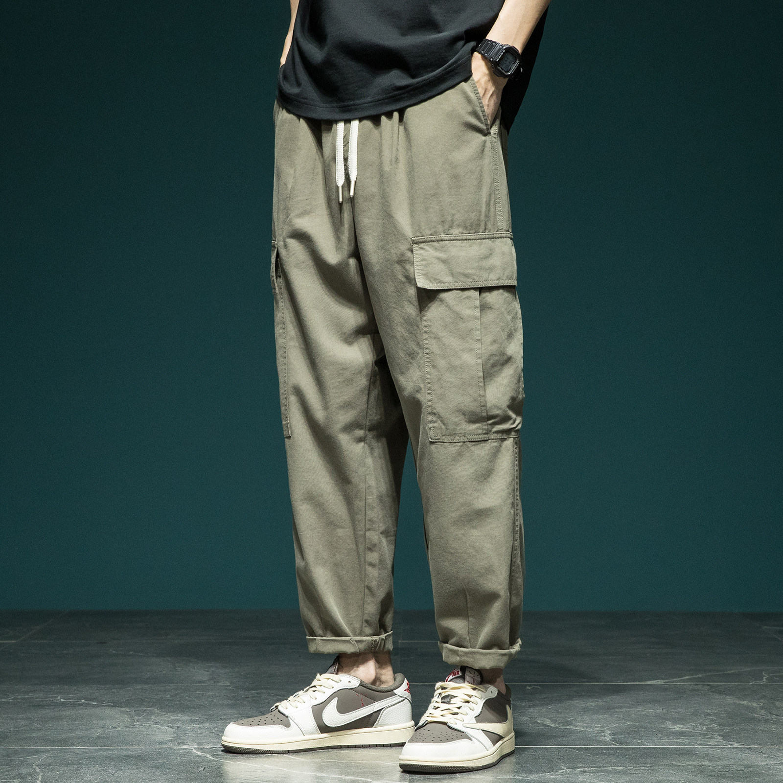 美式天丝宽松加肥加大码工装裤男