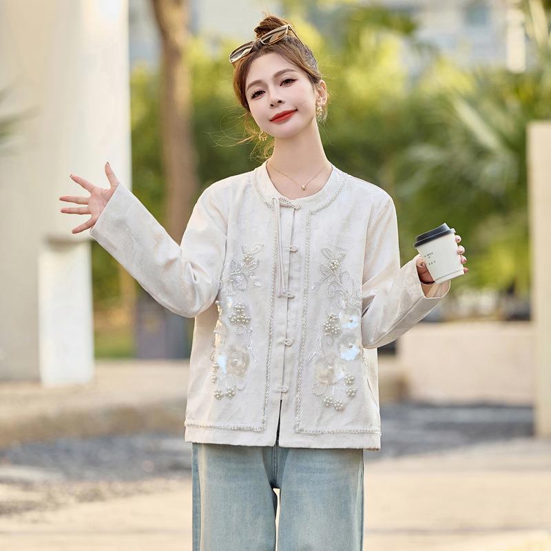 新品现刺货新中式新款春装珠亮钉片绣工盘扣短YJ8517-0重外套