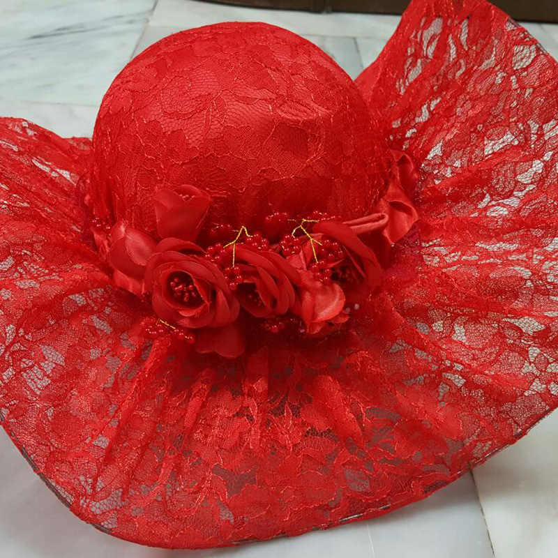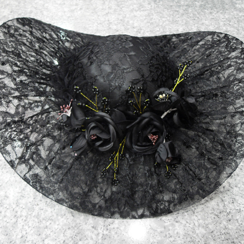 蕾丝帽子女薄款镂空服装宴会沙滩舞台演出网红法式夏季遮阳帽防晒